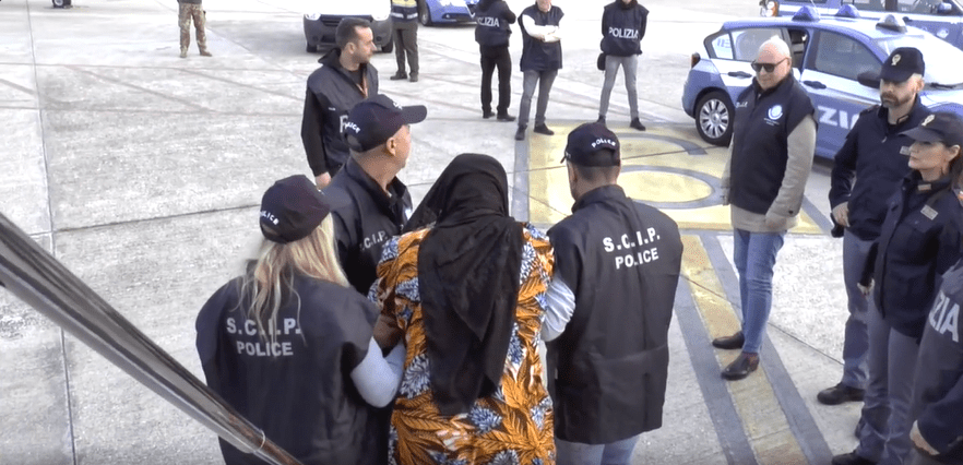 Video released by the Italian police showed the woman being flown from the Nigerian capital Abuja to Ciampino airport in Rome where she was taken away in a wheelchair by police.