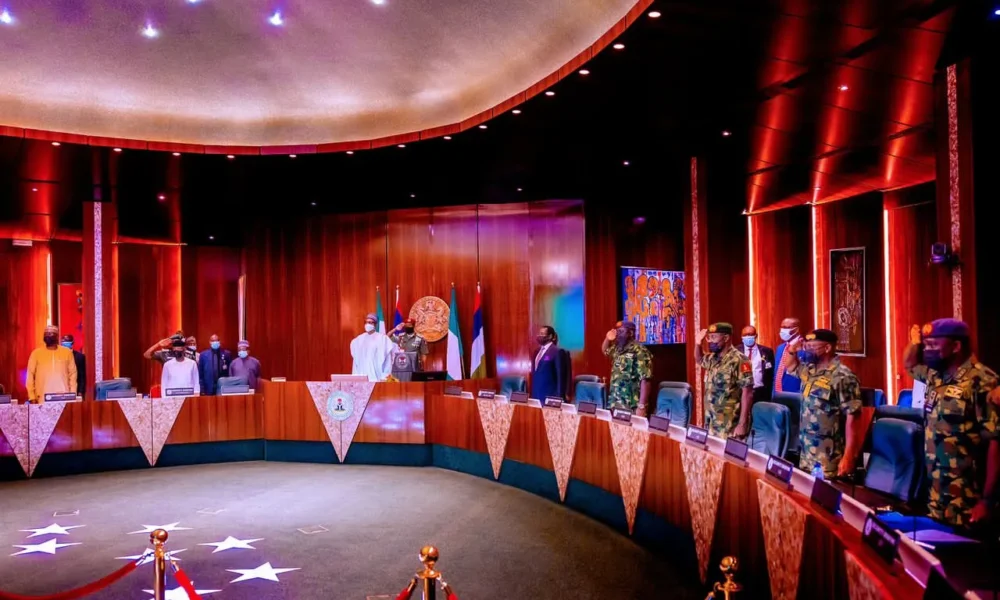 Among the ministers at the meeting were those of Defense, Bashir Magashi; Interior, Rauf Aregbesola, and Foreign Affairs, Geoffrey Onyeama.