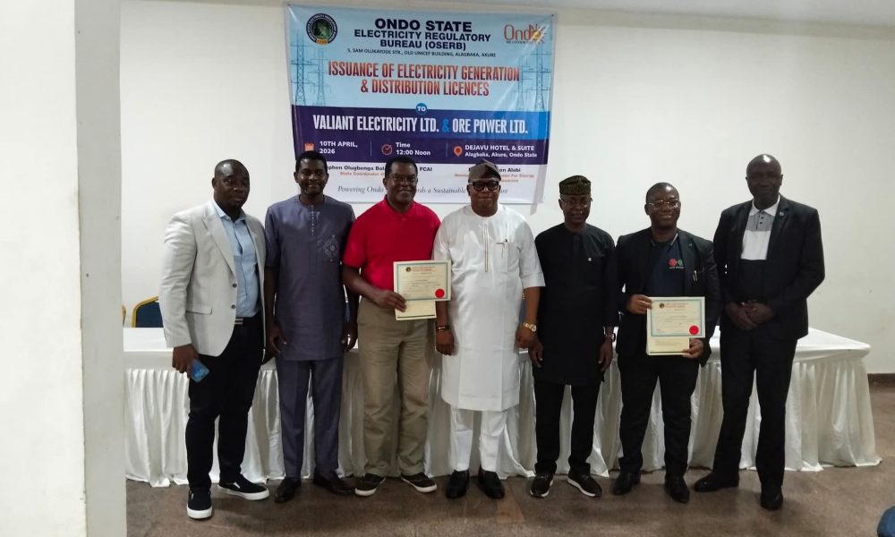 The Ondo State Government, through the Ondo State Electricity Regulatory Bureau (OSERB), has granted power generation and distribution licenses to Ore Power Limited and ASB Valiant Electricity Limited under the Ondo State Electricity Law, 2020.