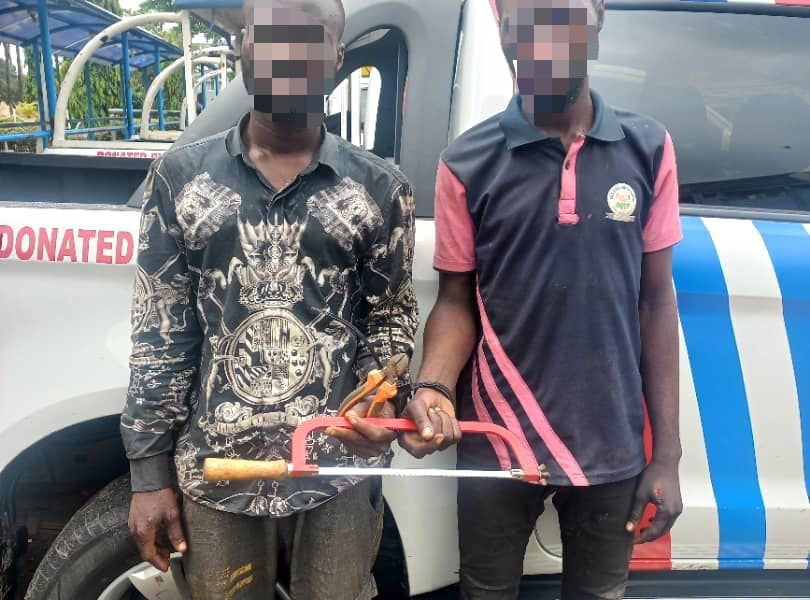 Police operatives have nabbed two suspected vandals who attempted to steal armoured cables in Ikoyi, Lagos State.