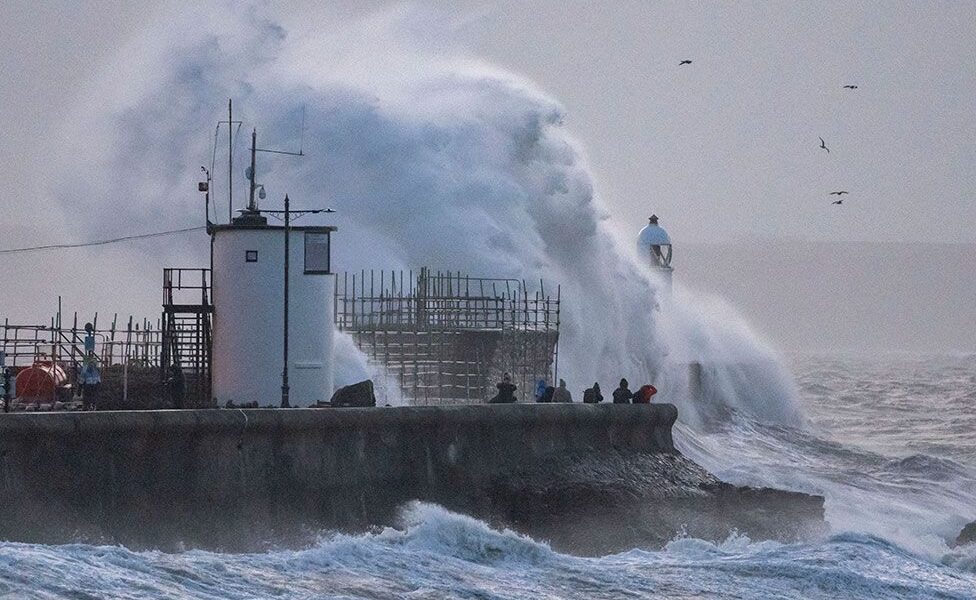 Both councils advised people to stay back from cliffs and seafronts due to the danger of large waves, with Cornwall warning of possible flooding during the high spring tides at about 06:00.