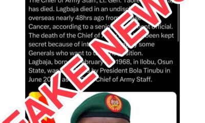 The Nigerian Army has dismissed the rumoured death of the Chief of Army Staff (COAS), Lt.-Gen. Taoreed Lagbaja, by some individuals on social platforms. The army...