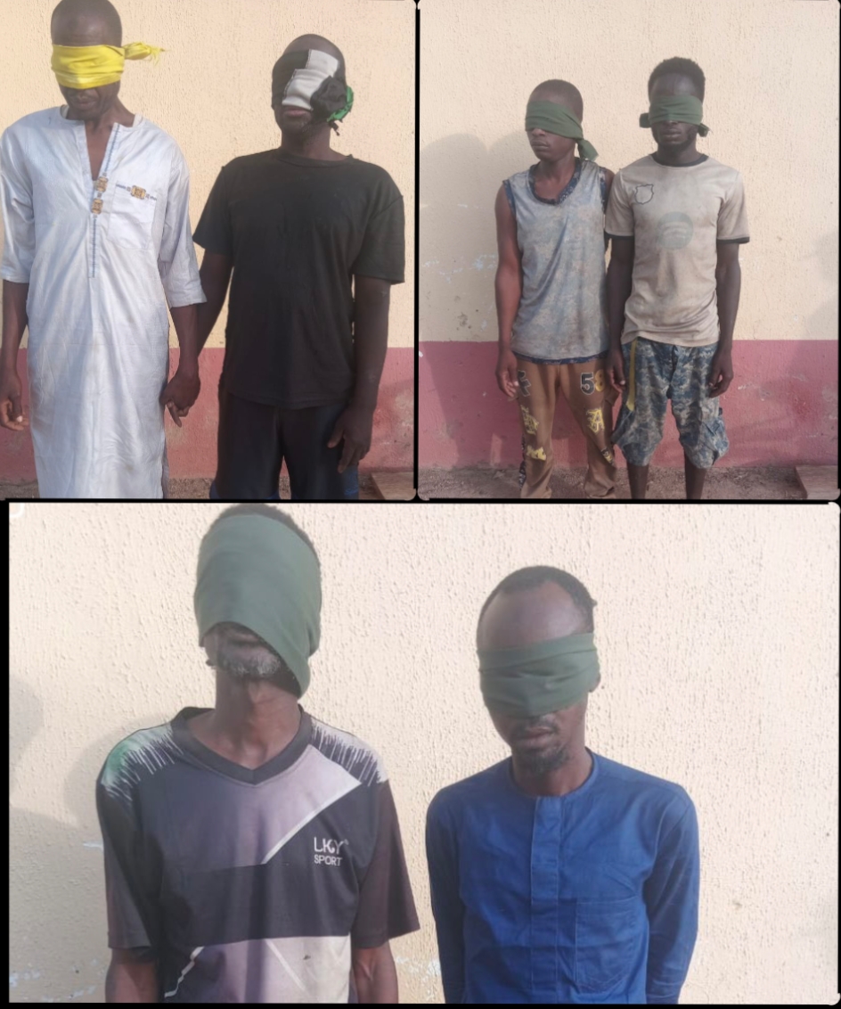 The suspects were identified as Alhaji Saleh Manman Ibrahim, 44; Ado John, 27; Umaru Yunusa, 22; Musa Yauba, 43; Muhammad Salisu, 44; and Babangida Isah Muhammad, 28.