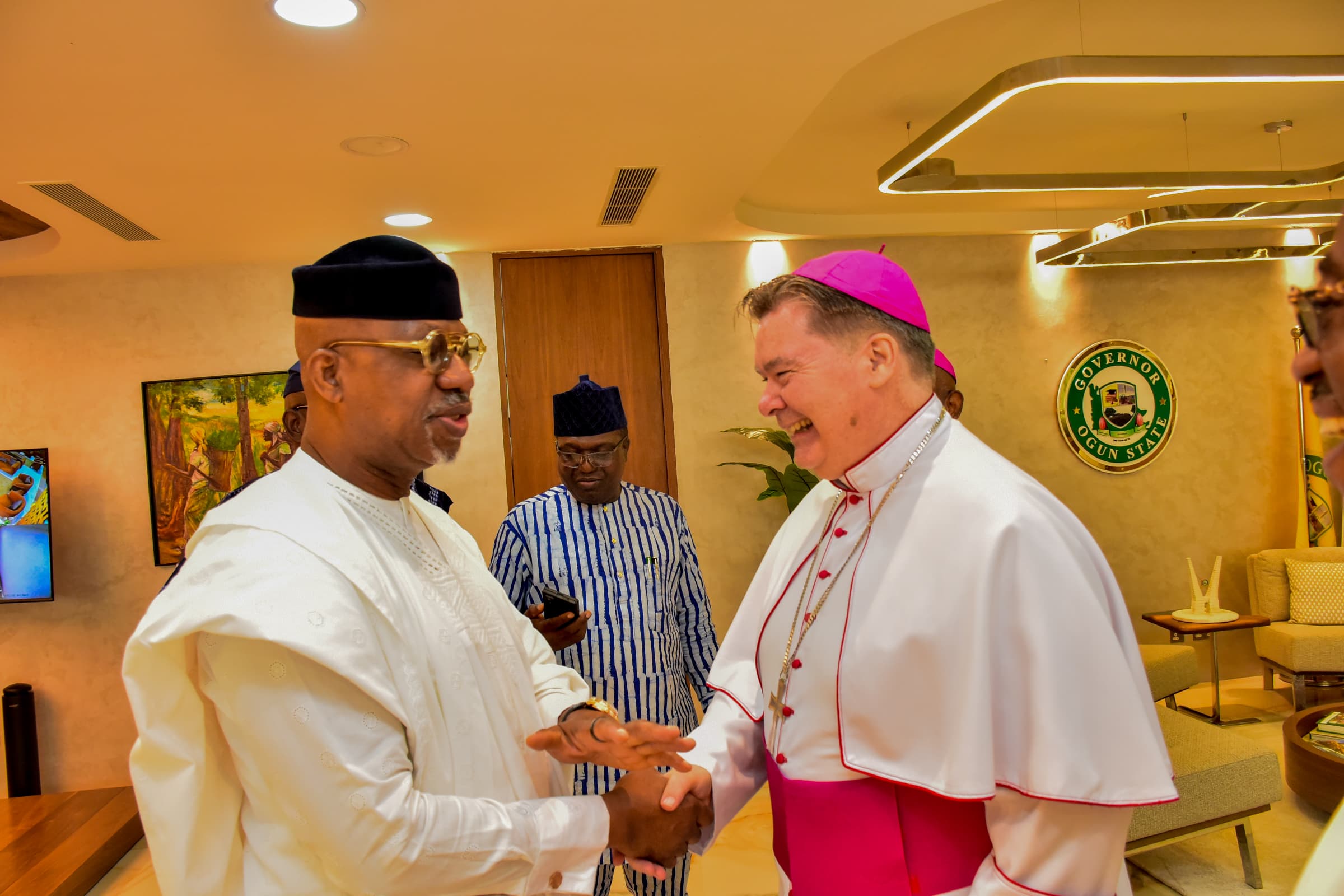 The governor made this known on Friday while receiving the Apostolic Nuncio to Nigeria, Michael Francis Crotty, who paid him a courtesy visit at his office in Oke-Mosan, Abeokuta, alongside the Catholic Bishop of Ijebu-Ode, Francis Obafemi Adesina, the Catholic Bishop of Abeokuta, Peter Odetoyinbo, and other church officials.